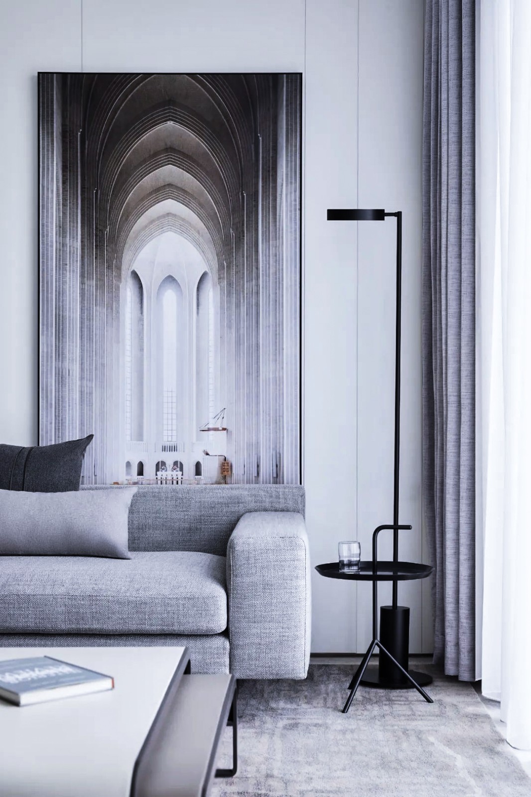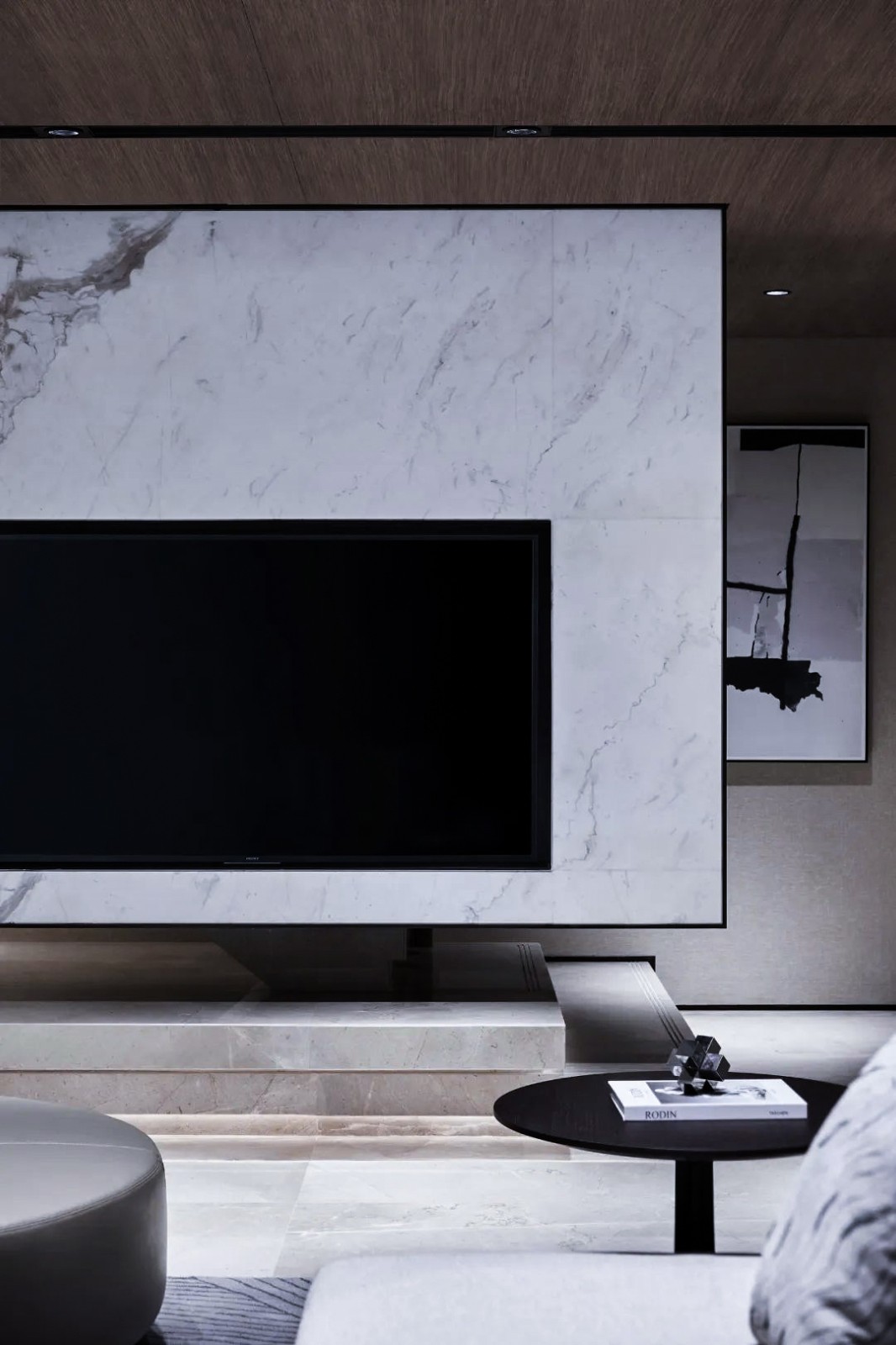 The first floor has a spacious layout and a floor height of 6.2 meters, with large floor-to-ceiling landscape windows. Its dimensions and comfortable style are obvious. The sense of extension, lighting, materials and form transition are carefully measured to add charms to the details.
