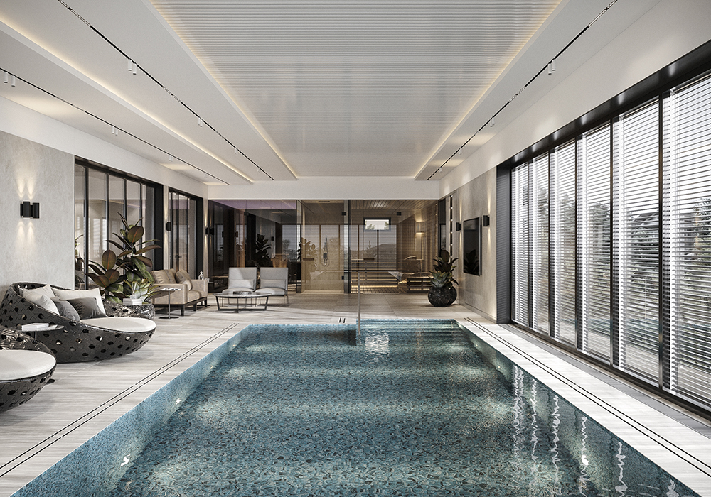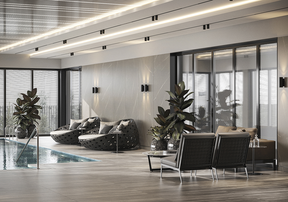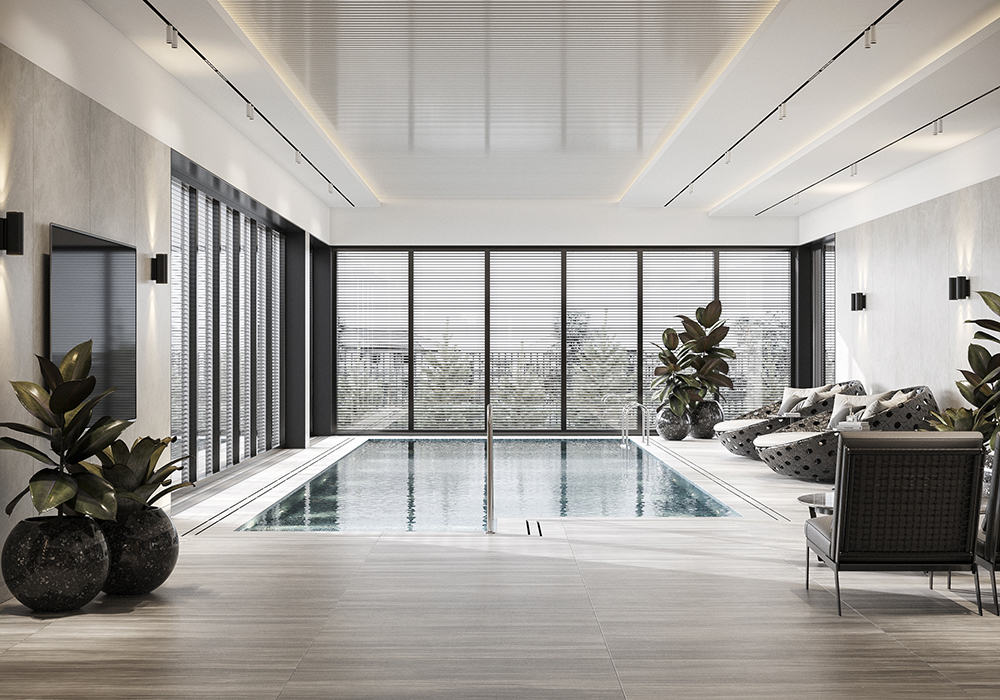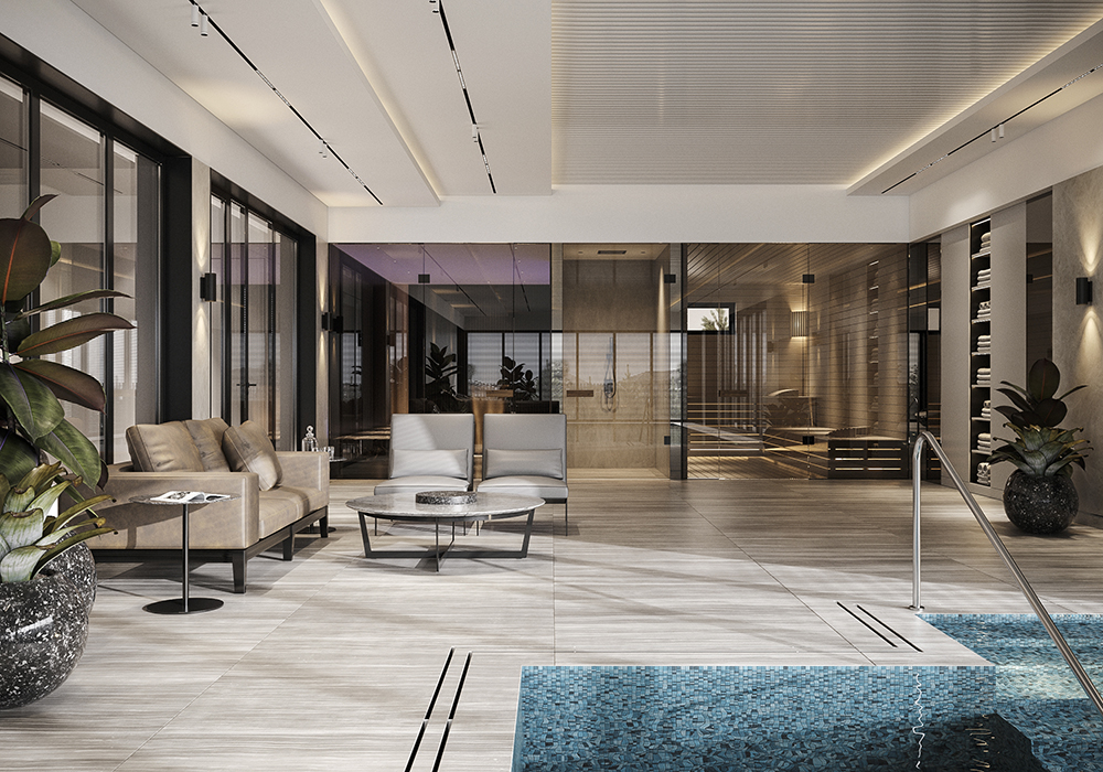 The swimming pool and sauna are located on the first floor. The clear water as well as the natural scenery outside the French window make one feel pleasant and relaxed.