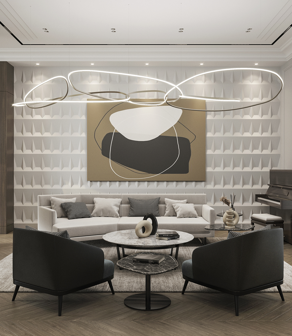 The classical elements are deconstructed and integrated into a modern space design. In the stylish and fast-paced urban life, this space shines with a beautiful and pure classical charm.