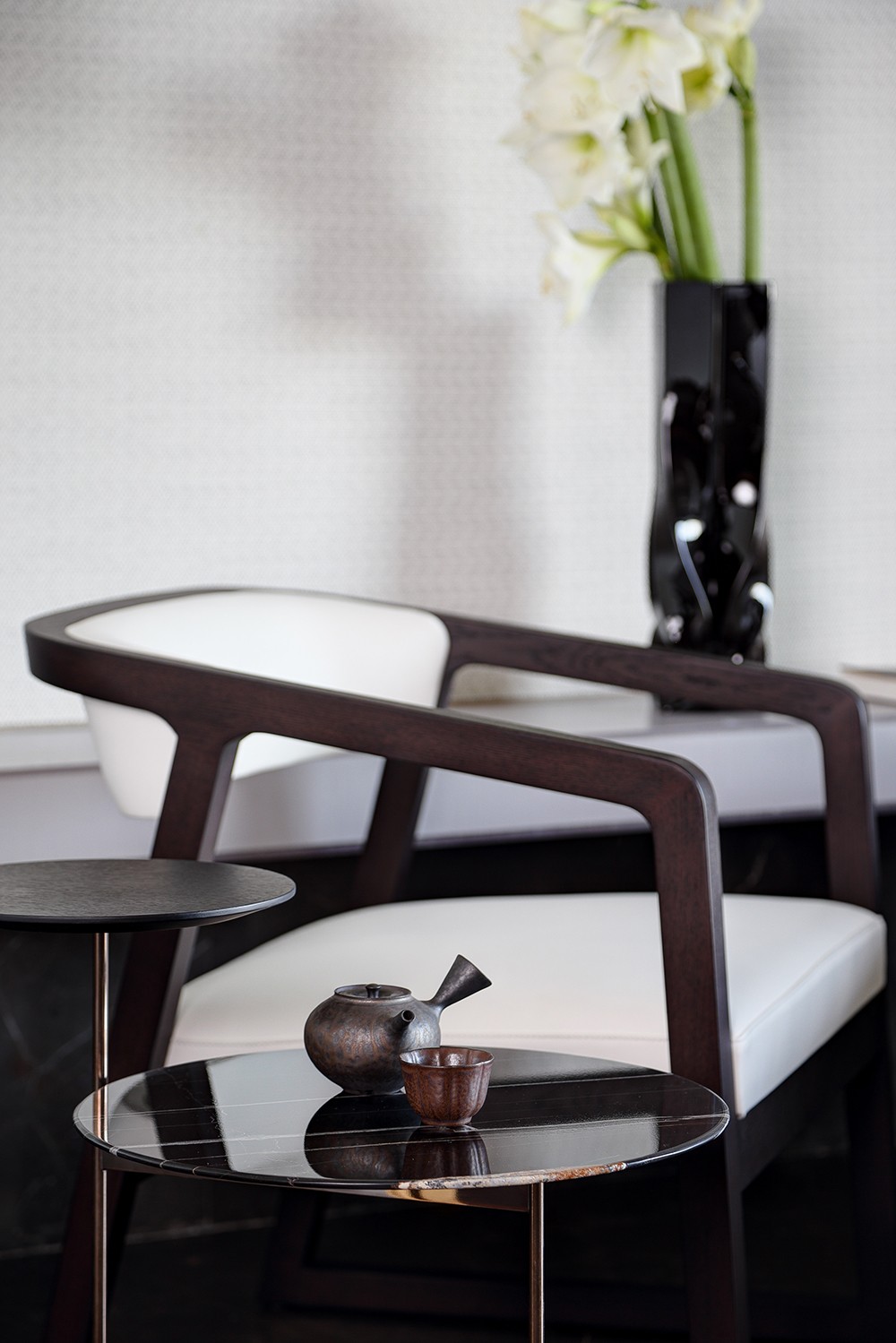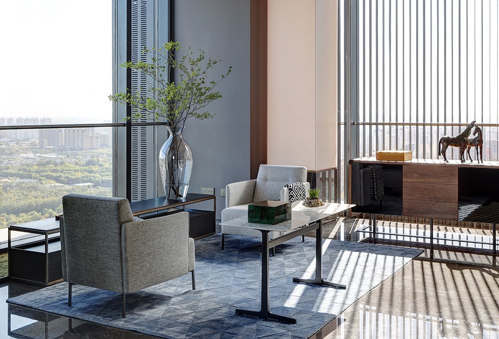 设计师赵树先生说:“作为万物·云之云安项目室内设计的负责人,我力求让每一件物品都处于恰当的位置,和谐依存。空间是有限的,但意蕴却可以无限。家具、饰品虽然形态不同,但我希望它们都能让人处处感受到满溢的清澈与自然之美。”