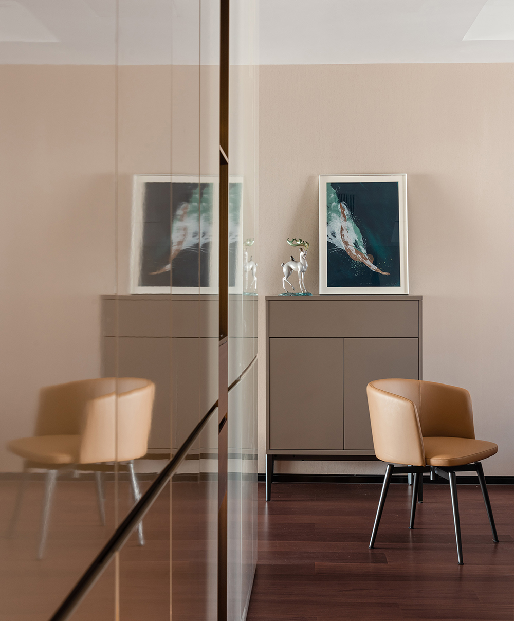 作为进入家中的第一道风景,一柜到顶的入户柜,既简单又实用。封闭式的收纳空间可以把零碎物品隐藏,利于打造干净整洁的居家环境。