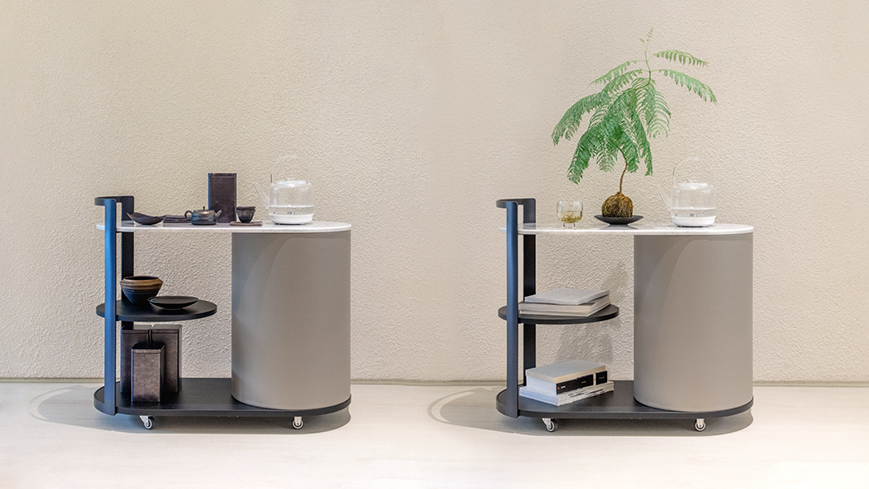 星月茶车外形优雅圆融,隐藏式储水和走线设计令室内整洁美观。