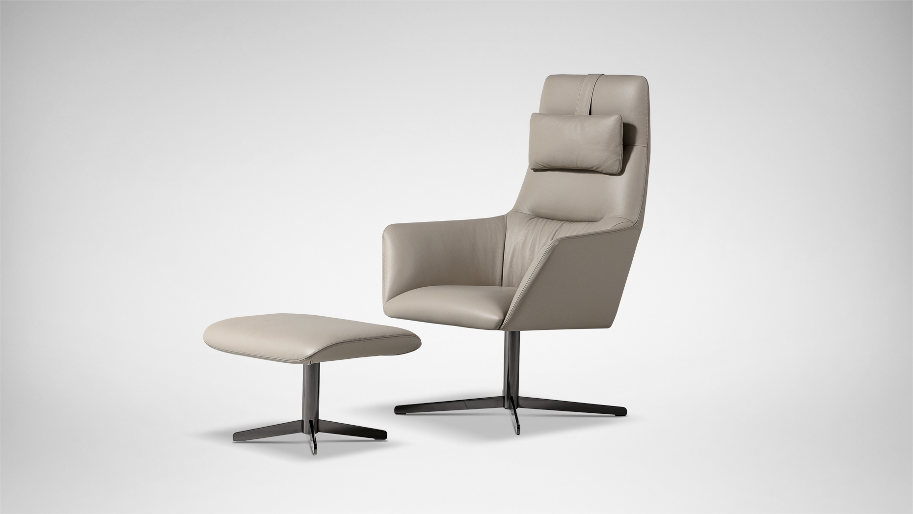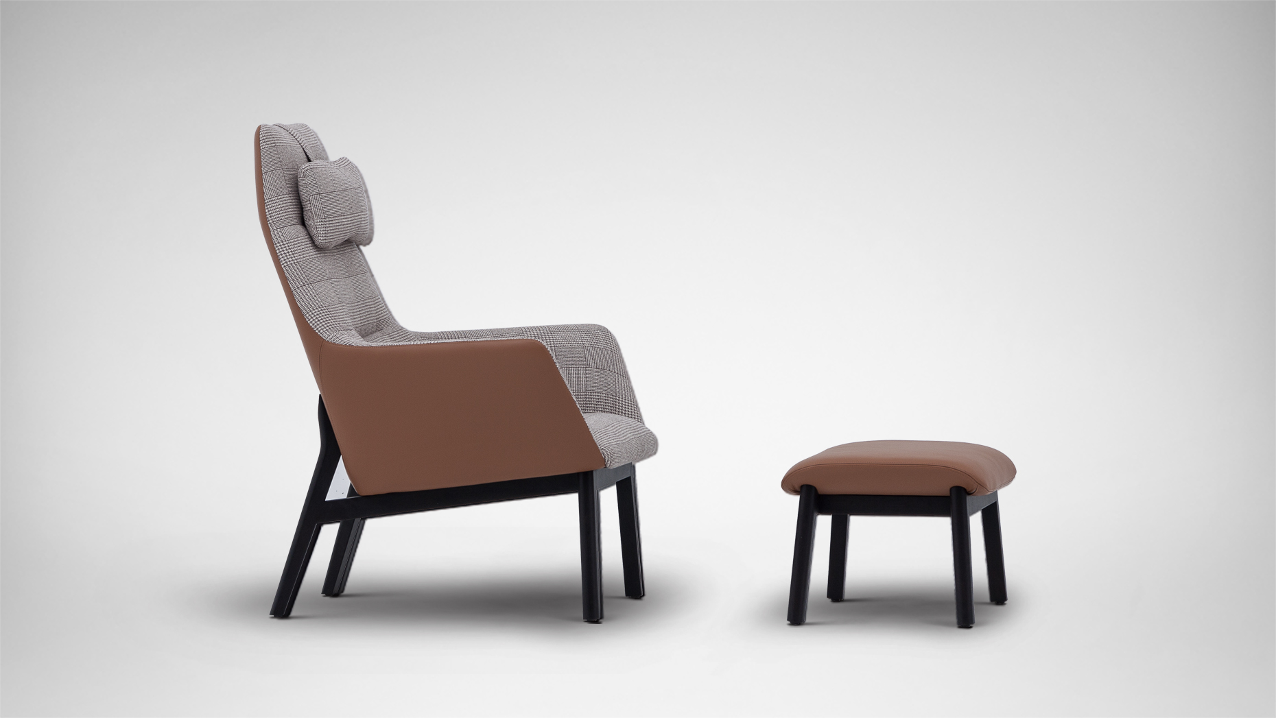宽阔的造型给人更多自由空间,既有木腿托起的稳重,也有金属腿旋转带来的愉悦。