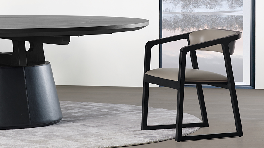 圆润的扶手、舒适的坐垫,尽显产品的优雅舒展。此系列有餐椅、书椅和休闲椅可供选择。