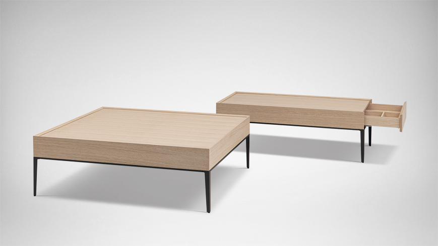 台面下带有四周围合的全木质抽屉,便于取放和清理;内部不对称分隔比例精妙,呈现别致美感。
